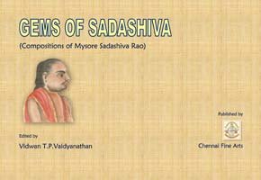 “Gems of Sadashiva” is the fifth book containing the compositions of Mysore Sadashiva Rao. It is compiled in English and contains 54 compositions out of which 43 are with notations and for the rest, only text is available. This edition also includes songs (sahithyams) printed in Tamil script. This was published during the 250th Birth Anniversary of Saint Tyagaraja.